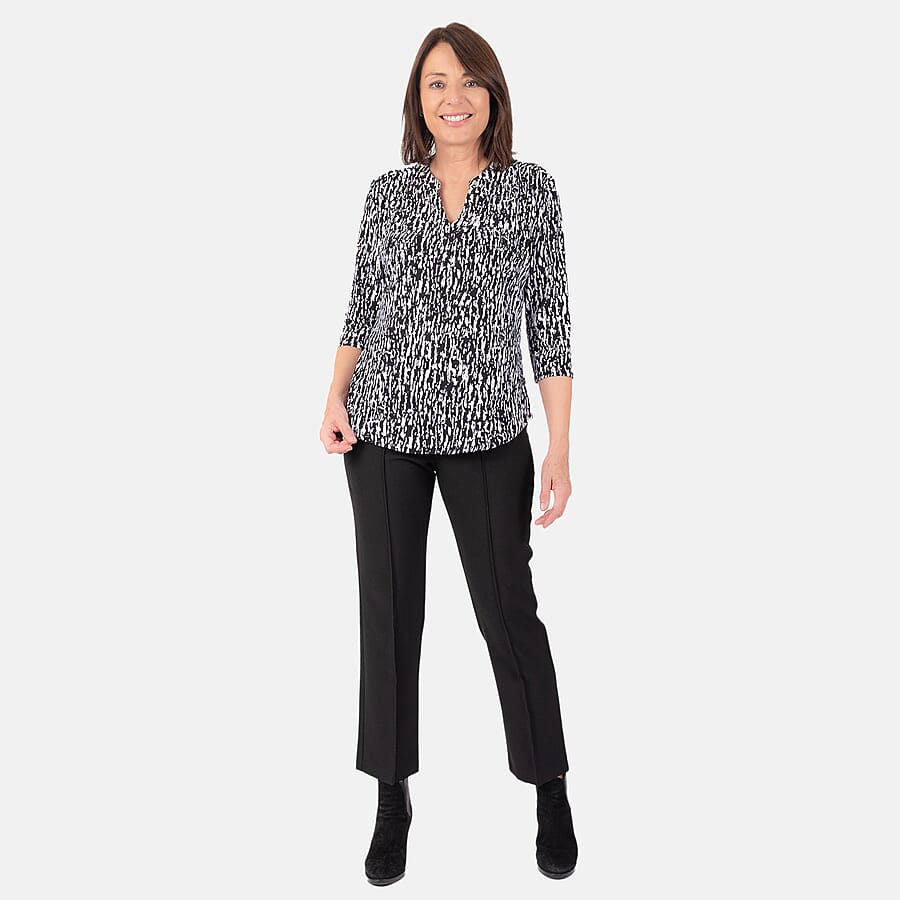 Classic Classic Abstract Pattern Mandarin Collar Blouse (Size 12) - Black